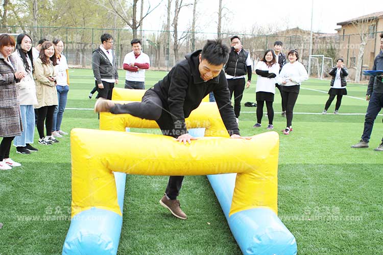 配置:北京拓展公司跨栏长宽高520X150X70cm;钻网长宽高600X250X123cm;平衡木长宽440cmX73cm;龙门长宽260cmx160x190cm(洞直径83cm)。